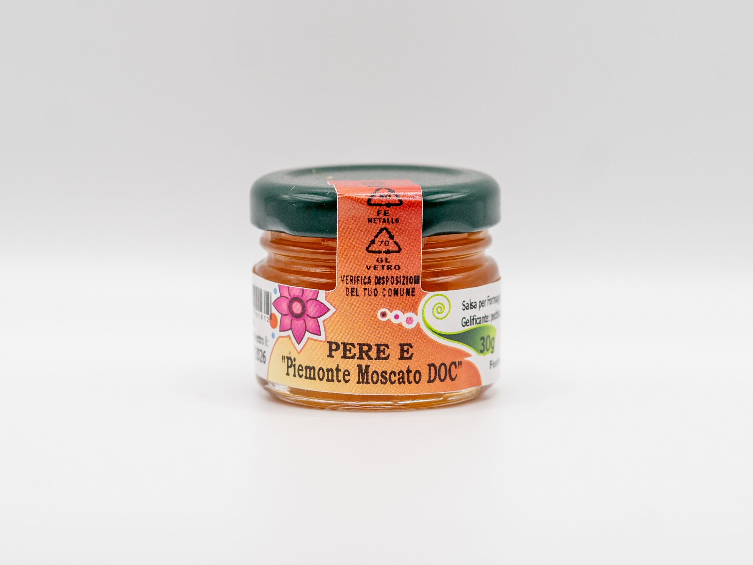 Ingredienti: pere 45%, zucchero, vino “Piemonte Moscato DOC” 7%, limone, gelificante: pectina.